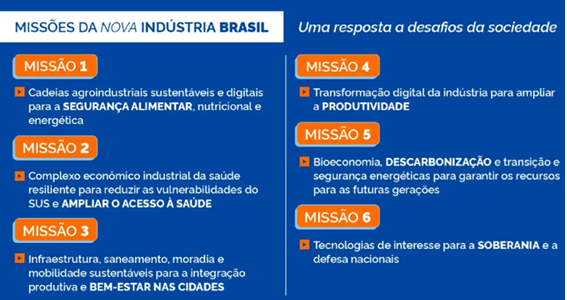 Tal mudança de paradigma é bastante esclarecedora para compreendermos a relevância dada à Bioeconomia na Nova Indústria Brasil – NIB, que abandona o antigo conceito de “reindustrialização” e volta-se para o de “neoindustrialização”, que não consiste apenas na retomada da indústria, mas a propõe em novos moldes, guiados pelos objetivos de sustentabilidade ambiental, econômica e social. Um sinal claro é que, das 6 missões prioritárias deste projeto interministerial liderado pelo Ministério do Desenvolvimento, Indústria, Comércio e Serviços – MDIC, uma é precisamente denominada de Bioeconomia e outra pode ser vista como um ramo desta, a Agropecuária Sustentável.