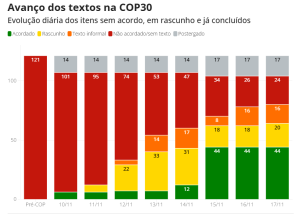 Nos próximos dias, espera-se que os acordos avancem e que fique mais claro o conteúdo das discussões que estão ocorrendo nas salas da COP30.
